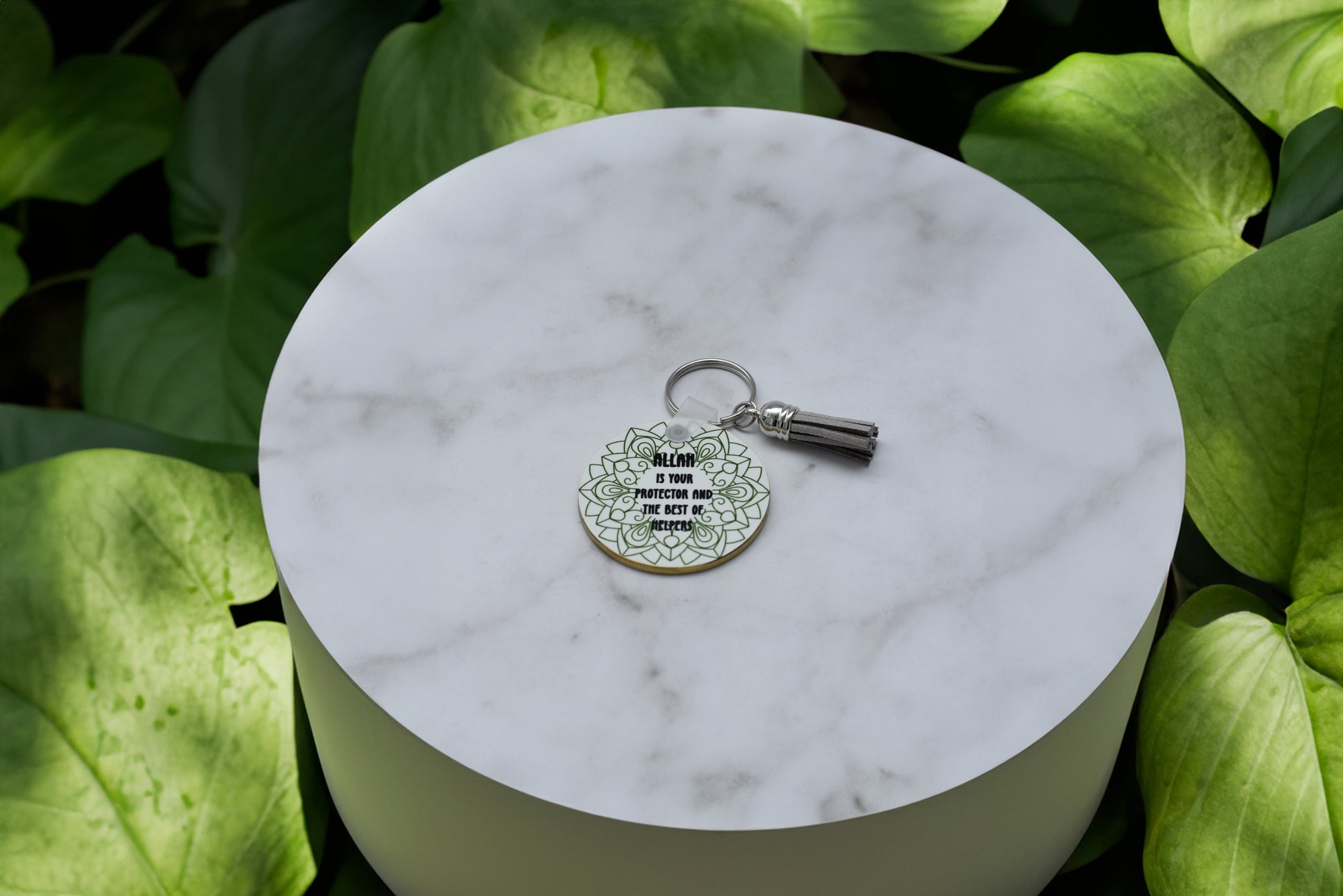 All of our keychains come with Ayatul Kursi in Arabic at the back.