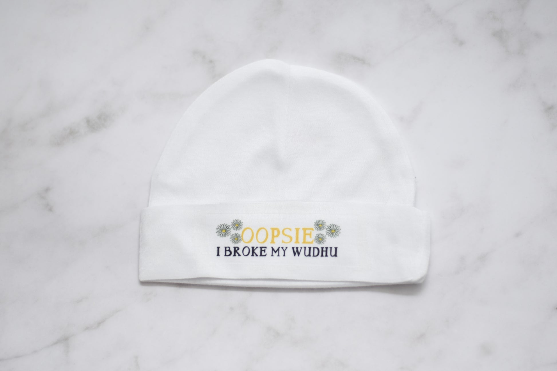 White color, washable baby hat.